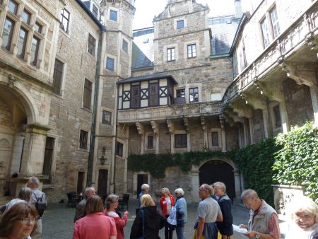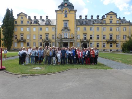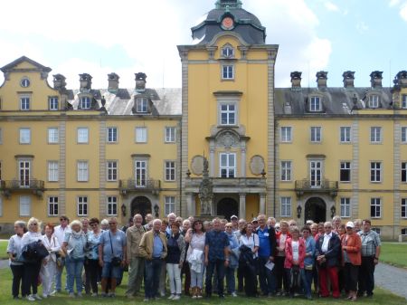 Nach kurzer Fahrt wurde das zweite Etappenziel erreicht, das Schloss Bückeburg mit seiner fürstlichen Erlebniswelt. Begrüßt wurde die Gruppe wohl eher zufällig von einem Corso prachtvoller Oldtimer, die sich vor der Kulisse des Schlosses besonders eindrucksvoll präsentierten. Von einer äußerst kundigen Gästeführerin mit vielen Anekdoten und überraschenden Momenten humorvoll und informativ präsentiert, verging die Schlossbesichtigung wie im Fluge. .Anschließend gab es genügend Zeit, den Schlosspark, die Fürstliche Hofreitschule oder die Altstadt zu erkunden.