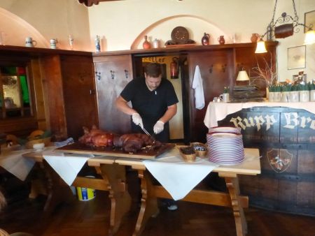 Auch beim abschließenden gemeinsamen Abendessen blieb die Geschichte nicht ganz außen vor. Wurde doch im Lauenauer Brauhaus Felsenkeller das nach dem Reinheitsgebot von 1516 selbst gebraute köstliche Rupp Bräu ausgeschenkt, das vorzüglich zum aufgetischten Spanferkel passte.