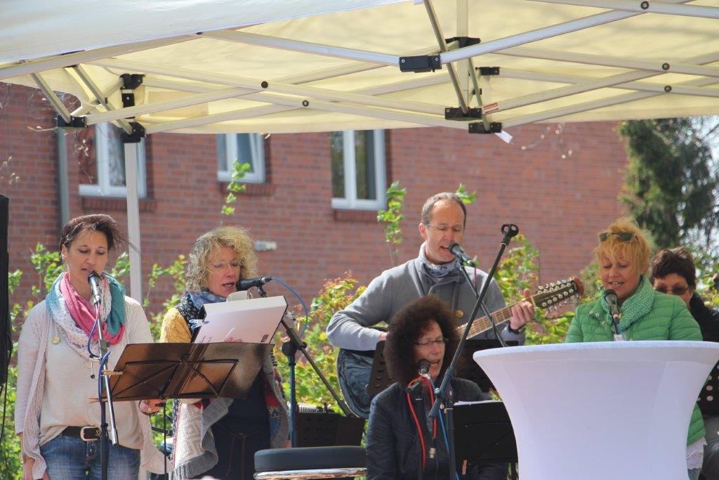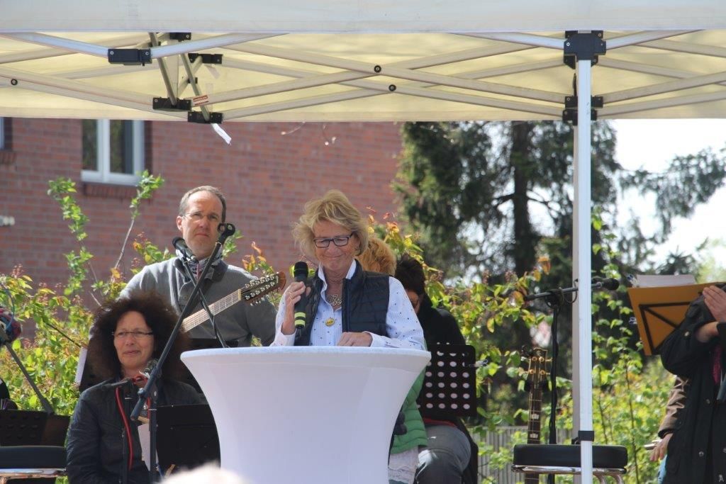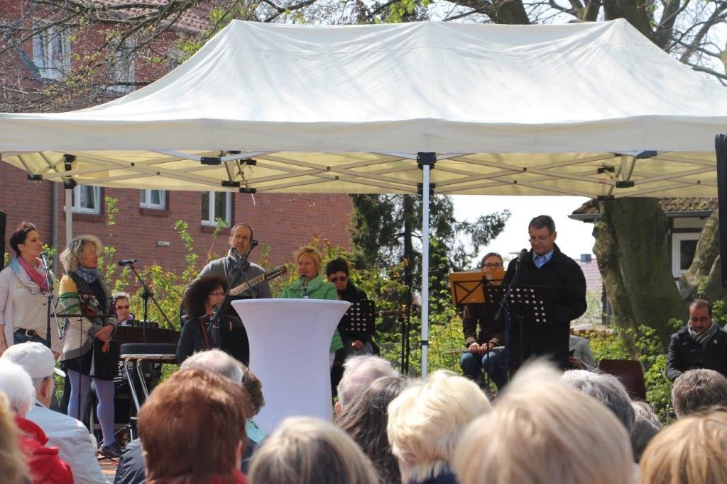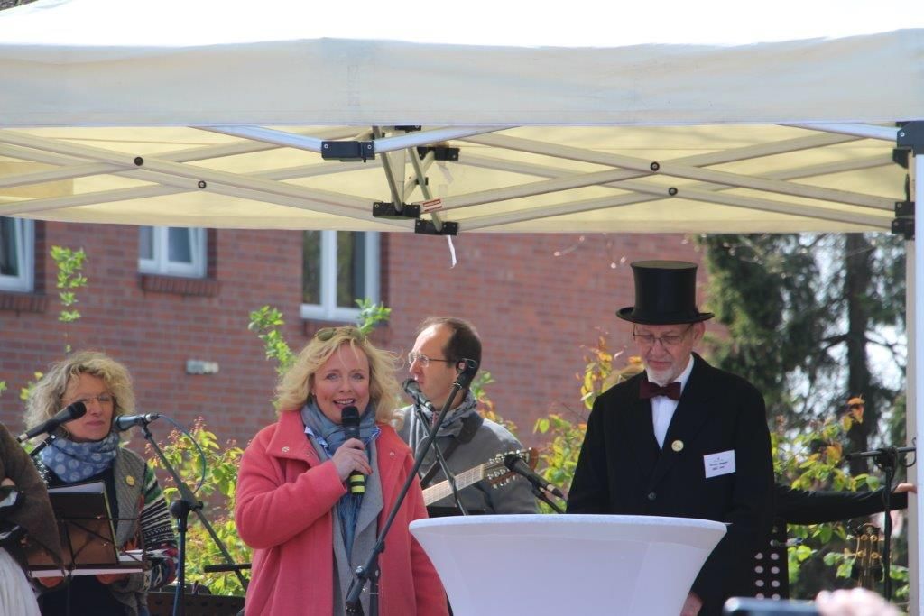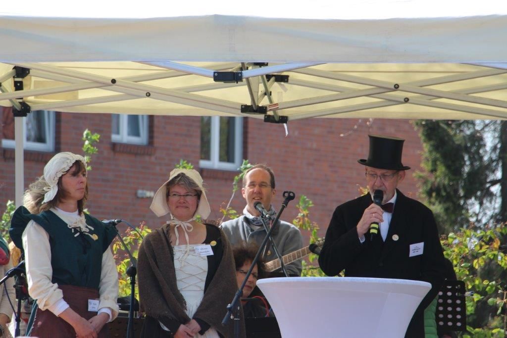 Der Kranz war von den Frauen des Vereins Lebendigen Ahlten in liebevoller Handarbeit gebunden und geschmückt worden; die starken Männer des Vereins hatten ihn in luftige Höhe gehoben. So überstrahlt der Maibaum nun den Festplatz Am alten Dorfteich. Das achte Ahltener Maifest konnte beginnen.