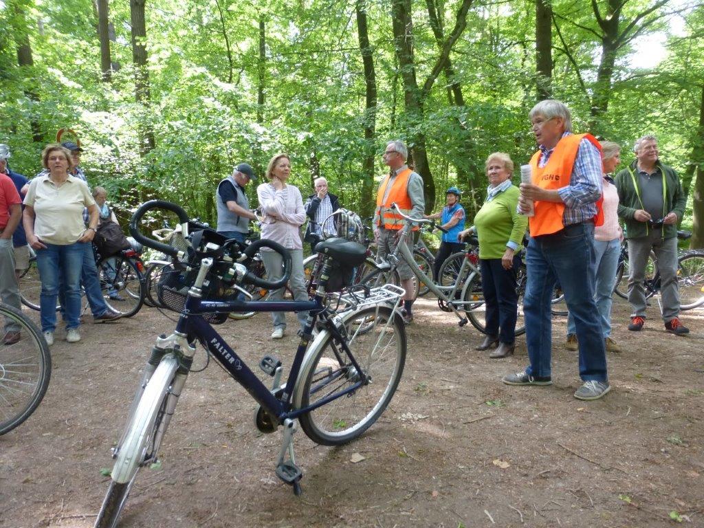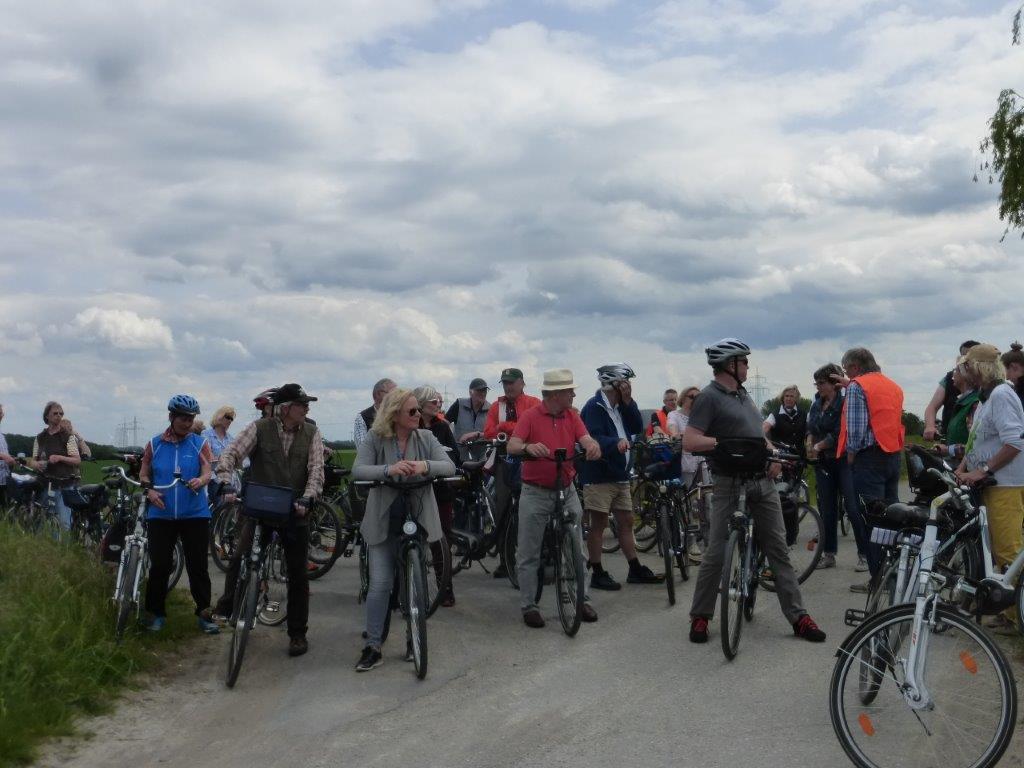 Nachdem vor 2 Jahren Ahltens westliche und nördliche Gemarkungsgrenze im wahrsten Sinne des Wortes erfahren wurde, sollte nun die östliche und südliche Grenze mit dem Fahrrad erkundet werden. Dabei konnten die 40 Mitradelnden von Hobbyhistoriker Hans-Henning Brandes viel Wissenswertes über den Grenzverlauf und die - nicht immer friedlichen - Beziehungen zu den Nachbardörfern erfahren. Vielen wird der „Spitzbubenweg“ in Erinnerung bleiben, von dem aus im dichten Wald auch mal gewildert wurde, wie Landwirt Hans-Heinrich Prüße zu erzählen wusste. Er steuerte Interessantes über die land- und forstwirtschaftlichen Gegebenheiten der Gemarkung bei und blieb auf die zahlreichen Nachfragen keine Antwort schuldig. Dementsprechend wurde an vielen Stellen Halt gemacht, so dass die 22 km lange Tour von allen gut zu bewältigen war.