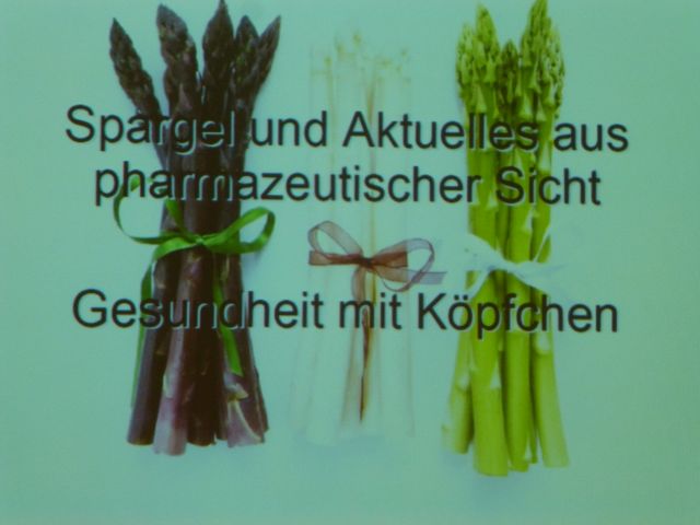 Da es noch keine Spargelkosmetik gibt, berichtete Frau Rüggeberg noch über die tollen Eigenschaften von roten Trauben. Trinken, essen und cremen, alles ist gesund.